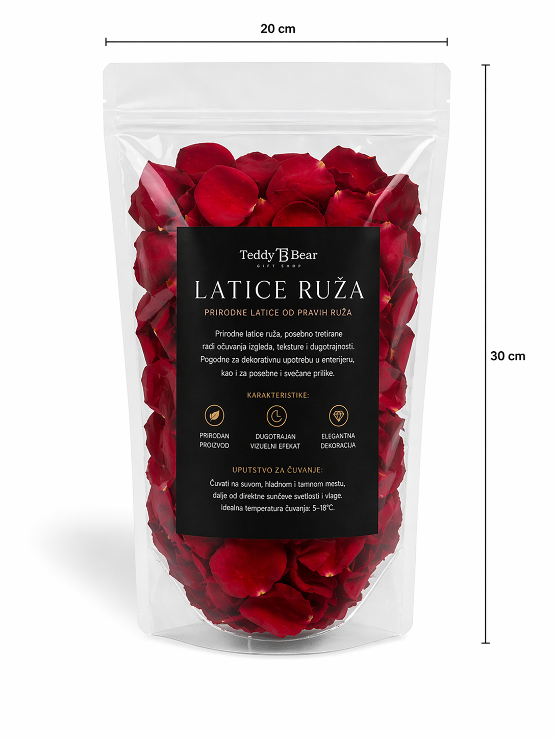 Naše latice ruža su pažljivo odabrane kako bi pružile maksimalan vizuelni efekat i prirodnu lepotu. Idealne su za dekoraciju prostora i stvaranje romantične atmosfere u svakom ambijentu.
